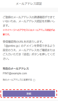 - 登録済みのメールアドレスを入力し、送信をクリック。