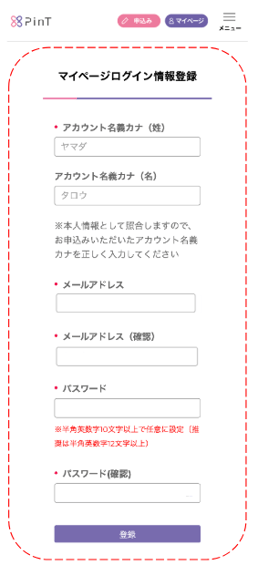 ※お申込み完了メールが見つからない場合やURL期限が過ぎている場合は、こちら - 以下のマイページログイン情報を入力し、登録をクリック。